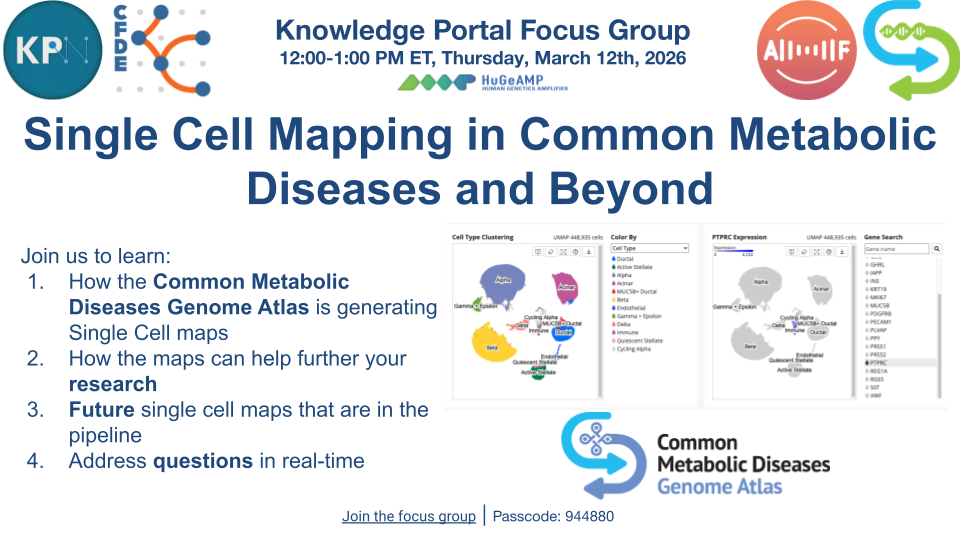 The Common Metabolic Diseases Genome Atlas is building single cell maps for Common Metabolic Diseases and beyond. Join the focus group to learn:
