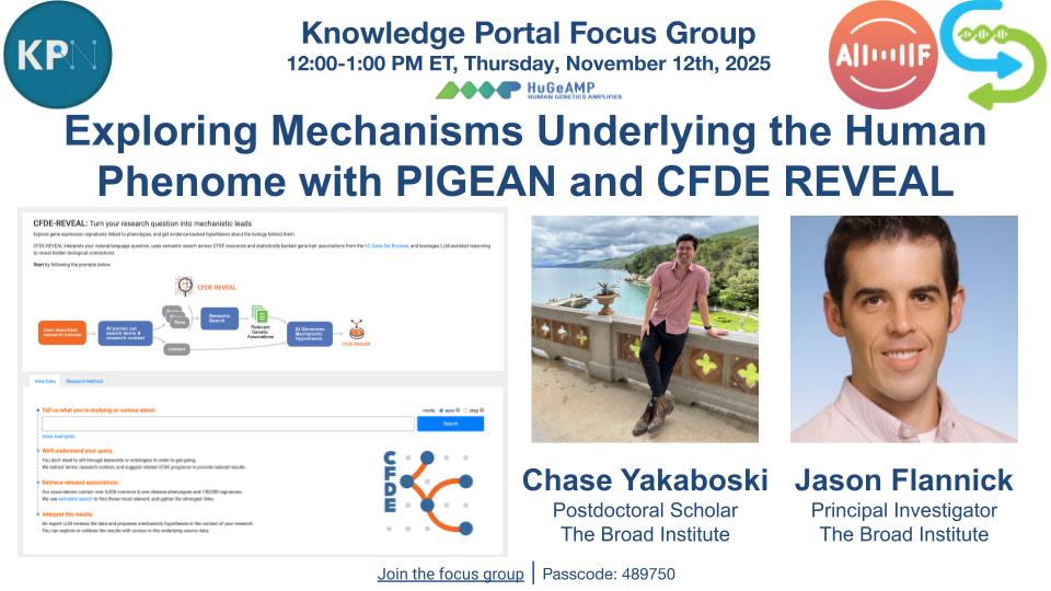 Have feedback on the tool? Curious how REVEAL can aid your research? Join Chase Yakaboski and Jason Flannick on Thursday, Nov 12th, from 12–1 PM ET as they howcase how PIGEAN + CFDE REVEAL are decoding the human phenome.